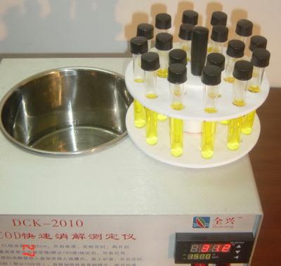 依照环标HJ/T 399-2007设计的JRHC-2011A兼容型CODcr快速消解器,以进口高温低粘度硅油为载体,通过电磁加热器升温,提供消解所需的热量。其特点是放置油槽内的溶器不受型体限制,可均勻受热,恒温效果优于其他方法。消解时间缩短至十分钟,一次可消解多个样品,节电节水高效且消耗试剂量少符合环保理念。该机采用自整定PID算法微电脑温控器,满足消解过程所需的精准温度和时间控制要求,调控范围宽适应多种选择。该机测定方式可选用分光光度法(适合要求的水样),或滴定法(参见国标GB 11914—89),即使劣质水样,如高含量的氯离子、悬浮颗粒物、色度及汽泡等也无仿碍;样品用量可变(选用消解瓶),保证结果精确可信。