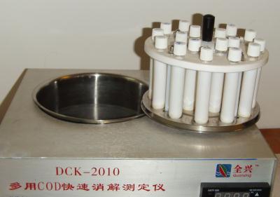 2.2.1 分光光度计是用来测定消解后溶液的吸光度,从而換算出水体中COD的浓度,是分析化学中最常用、最基本的光学仪器。光源强度、稳定性及分光精度是最主要的技术核心,国内产品如上海精科仪器厂的721G或722G型可见光分光光度计,北京光学仪器二厂的VIS-7220N可见分光光度计等,质量上称历史悠久。有些囯内外厂家认为COD测定一般只选用2个波长(600nm和440nm)应以简化,将多波长的分光部分改为固定波长(采用滤光片);又将用于摆放多支不同长度比色皿的可移动托架拆除,改为可放置园型试管或方型比色皿单一型托架(或称适配器)。如美国哈希DR1010 COD仪 ,以及国产连华科技5B-3C型COD快速测定仪等。
